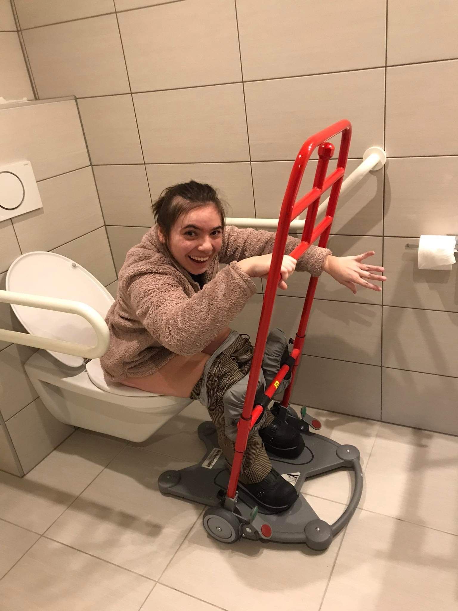 We zijn op hotel gegaan. Maar de hotelbadkamer was niet goed aan gepast om helemaal alleen op hotel te gaan waar ik ben geweest. Er moest een begeleider bij zijn om dingen aan mij te geven.